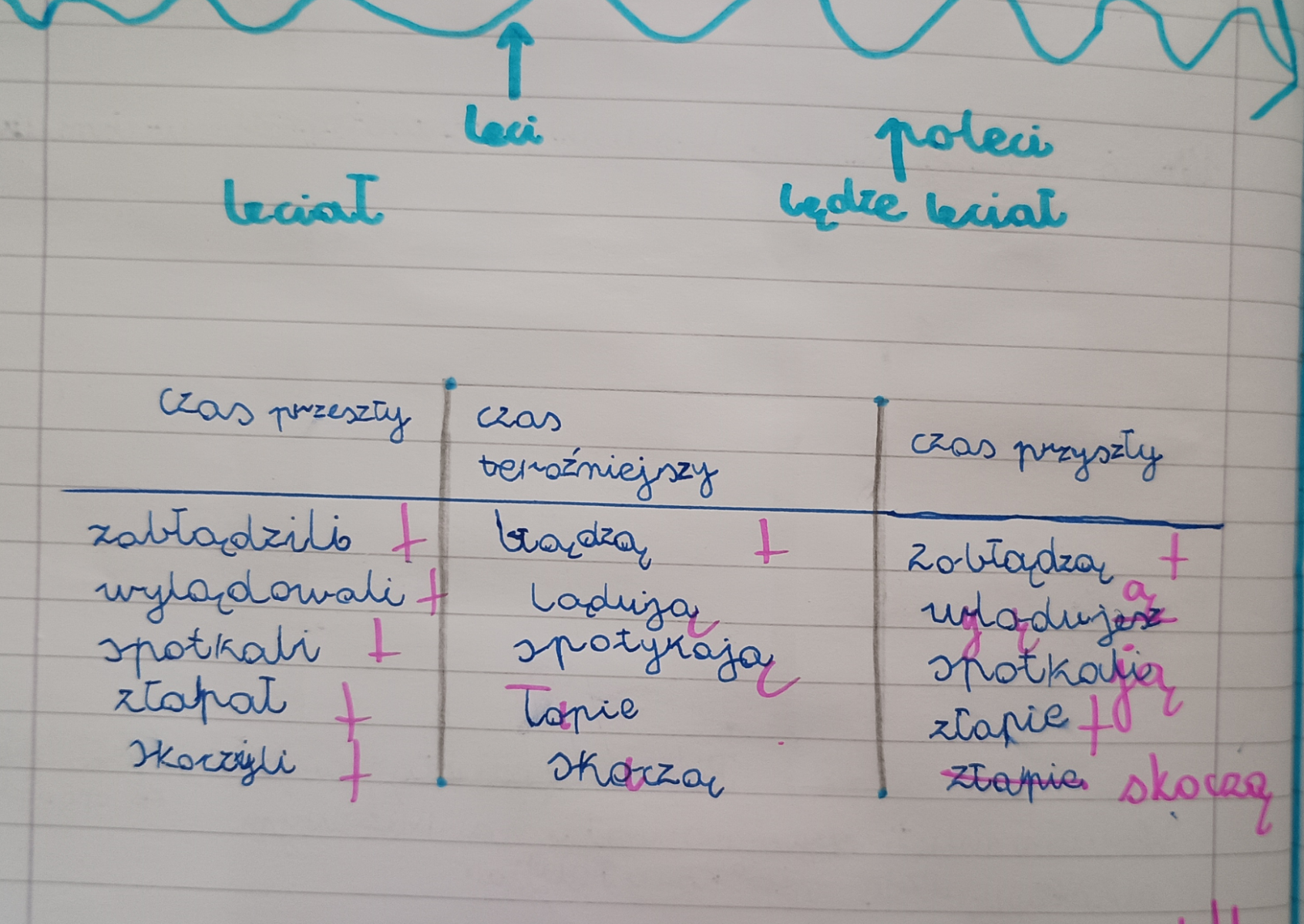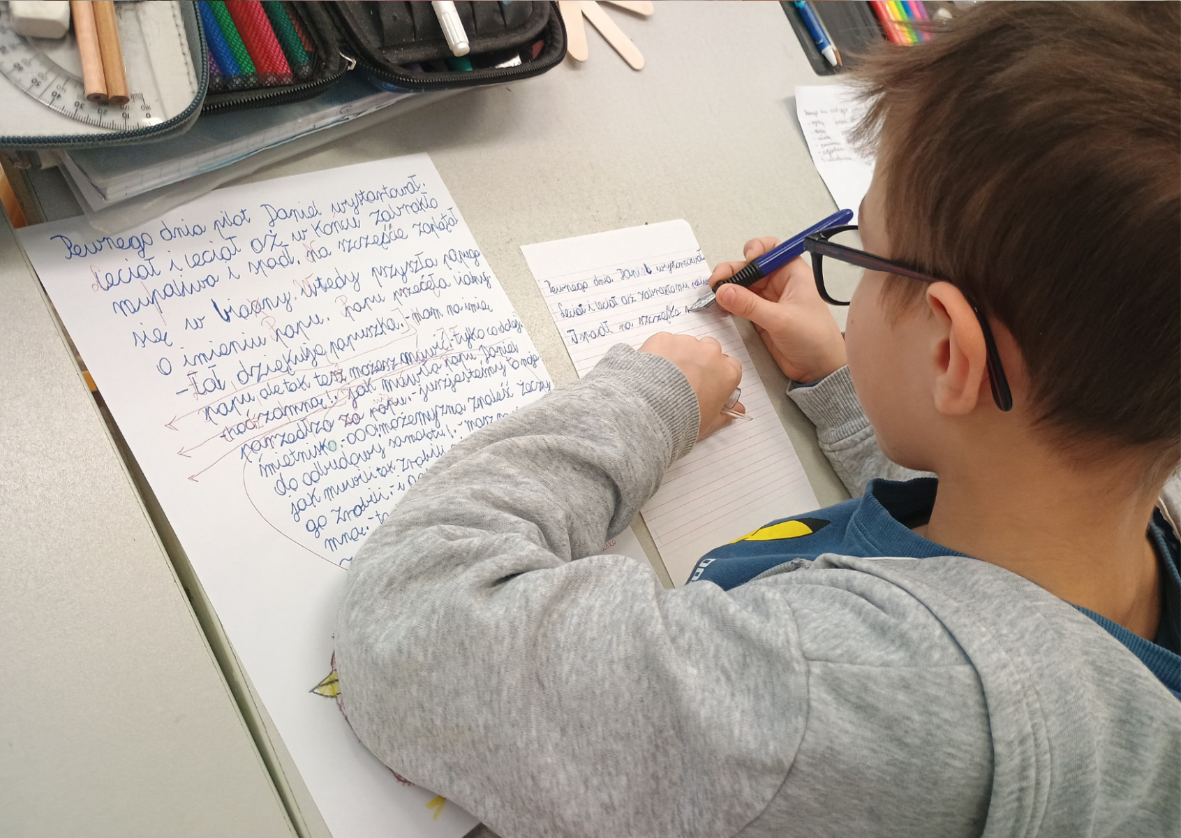Praca była pisana na brudno, następnie każde dziecko towarzyszyło mi podczas sprawdzania treści. Każdemu na bieżąco przekazywałam informacje zwrotne.