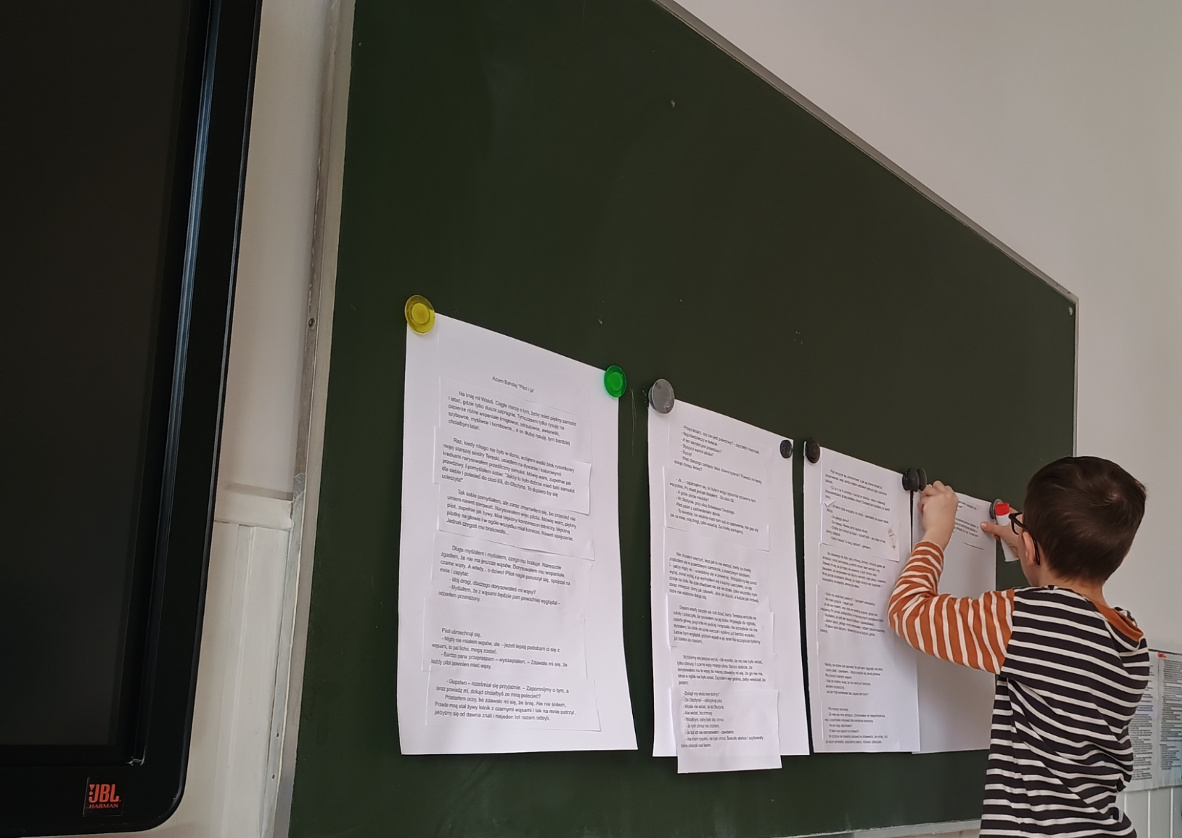 Jednak, żeby czerpać radość z czytania, trzeba mieć dobrą technikę. Jeśli ktoś nie czyta płynnie, czytanie będzie męczarnią. A w klasie umiejętność czytania jest na bardzo różnych poziomach u dzieci. Dlatego szukam zadań, w których czytanie odbywa się mimochodem, a dzieci same czują część lub konieczność przeczytania, żeby móc zaangażować się w daną aktywność.