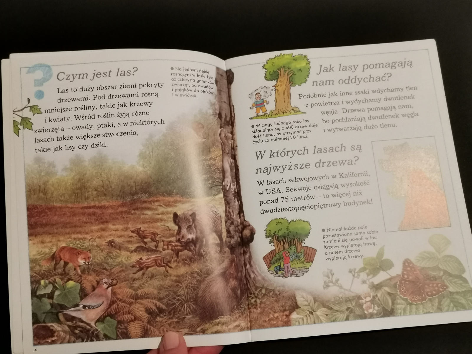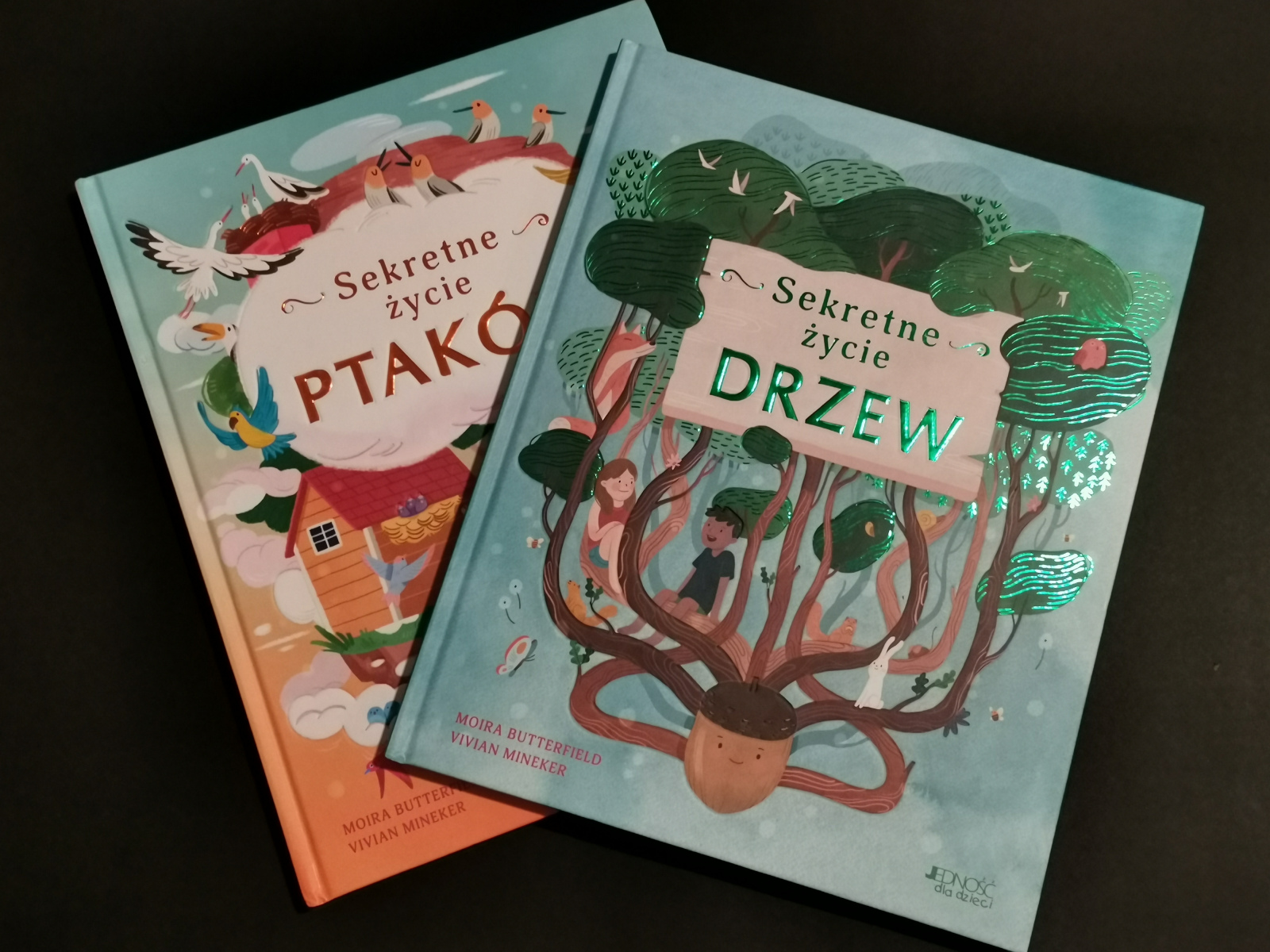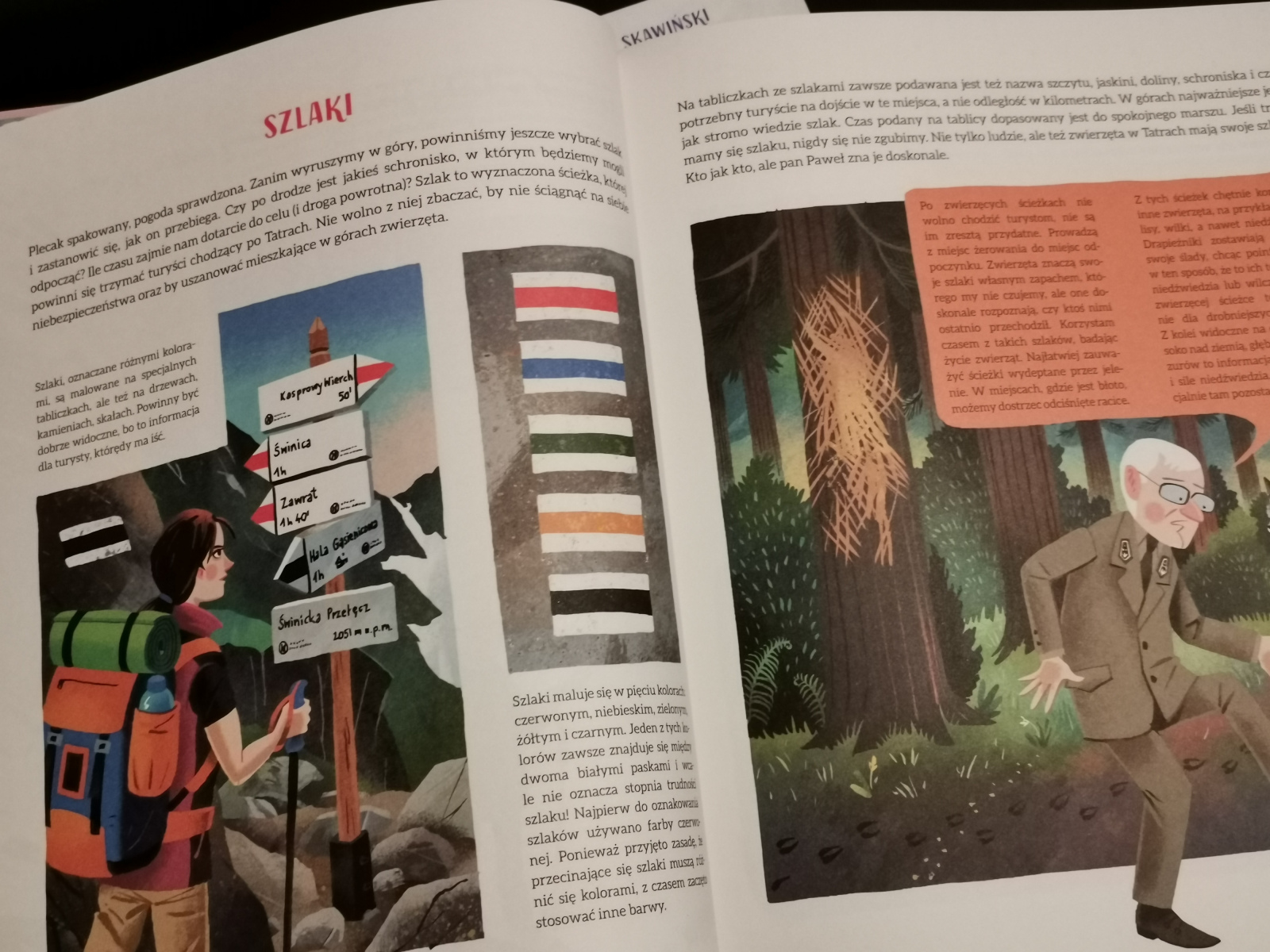 Przepadła przy książkach Barbary Gawryluk i Pawła Skawińskiego. Mam „Tatry” i „Podhale” i obie są świetne. O innych górach można przeczytać w „Bieszczadach” Adriana Markowskiego. Książki o górach wykorzystałam m.in. przy projekcie „Krainy geograficzne”. Równie świetna jest seria „Sekretne życie drzew” i „Sekretne życie ptaków” Moiry Butterfield i Vivian Mineker. A jeśli o drzewach mowa to oczywiście „Drzewa” Piotra Sochy i Wojciecha Grajkowskiego. Bardzo często wracam do tej pozycji. Mam też bardzo fajną książkę „Slow down, bądź tu i teraz – opowieści o przyrodzie, które sprawią, że zachwycisz się małymi cudami natury” Laury Brand.
